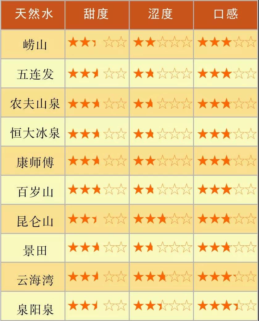 1、嶗山;2、五連發(fā);3、農(nóng)夫山泉 ;4、恒大冰泉;  5、康師傅;  6、百歲山;  7、昆侖山;  8、景田;  9、云海灣;  10、泉陽泉。